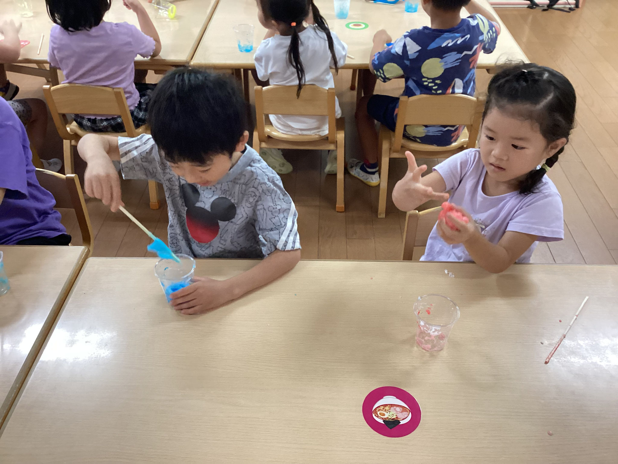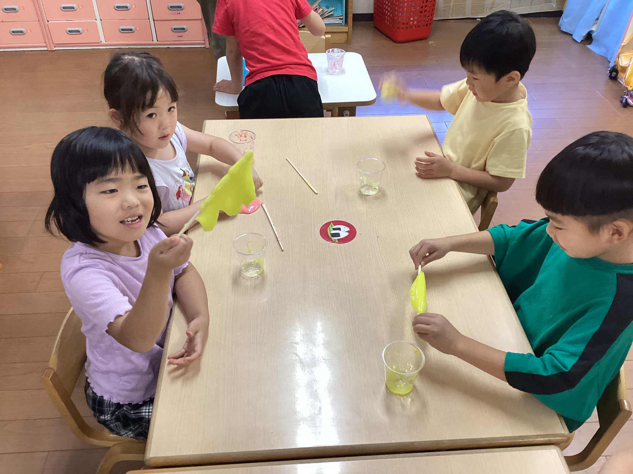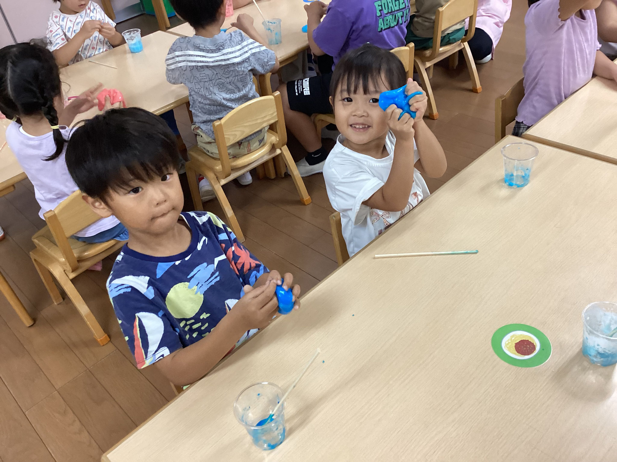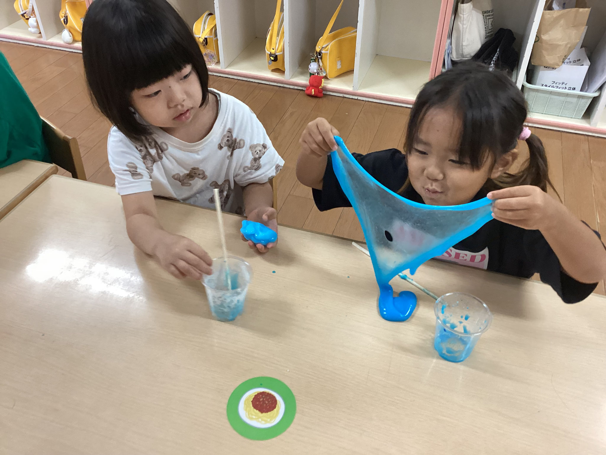 スライムを自分達で作り感触を楽しみながら遊んだり