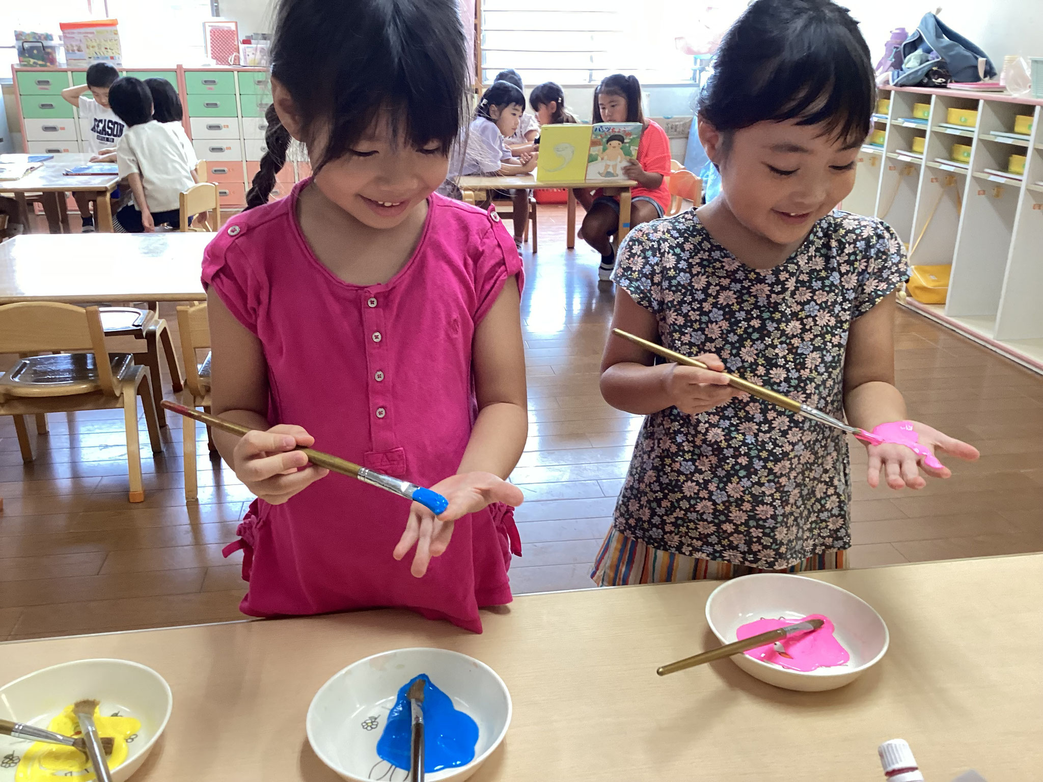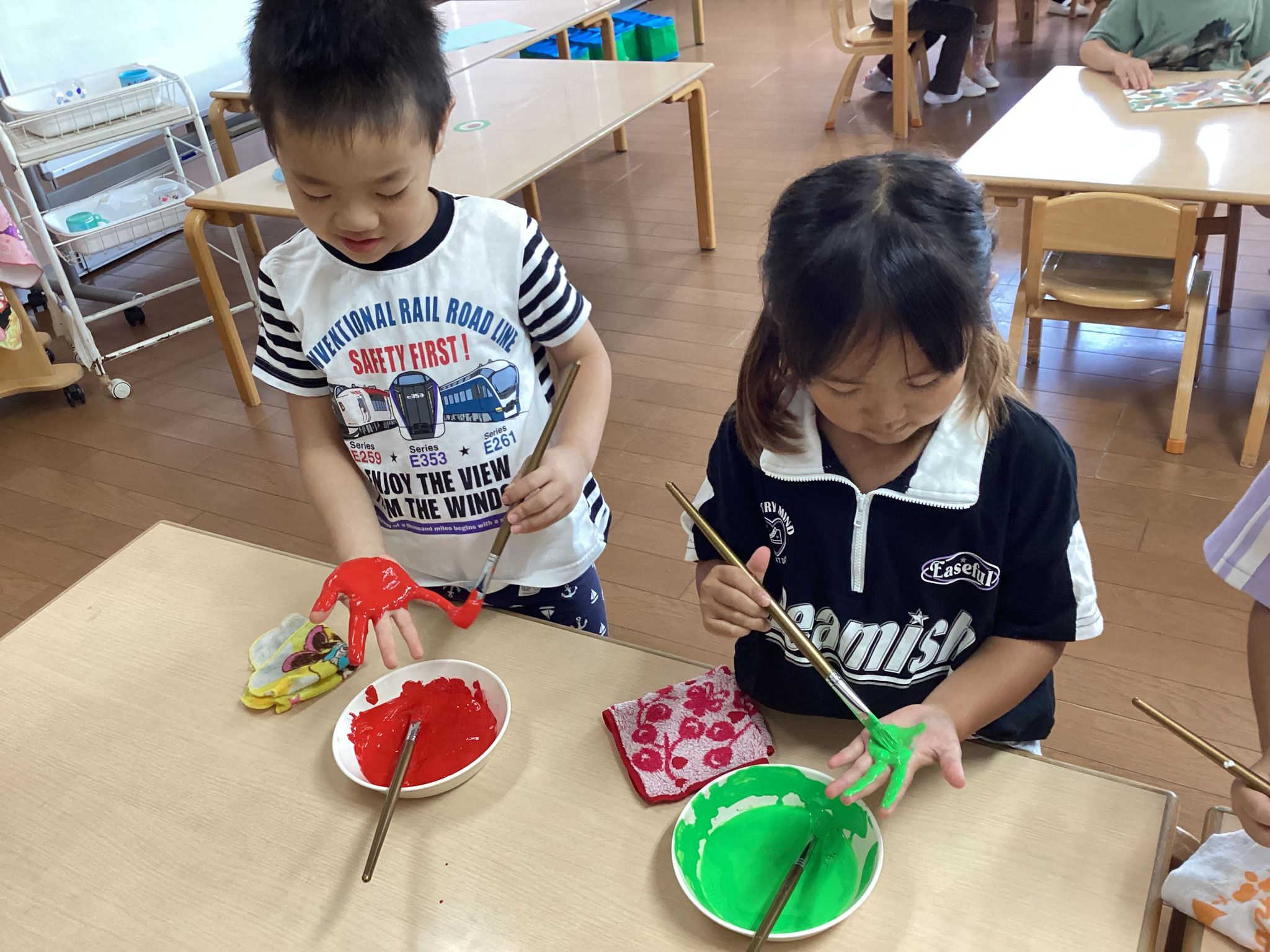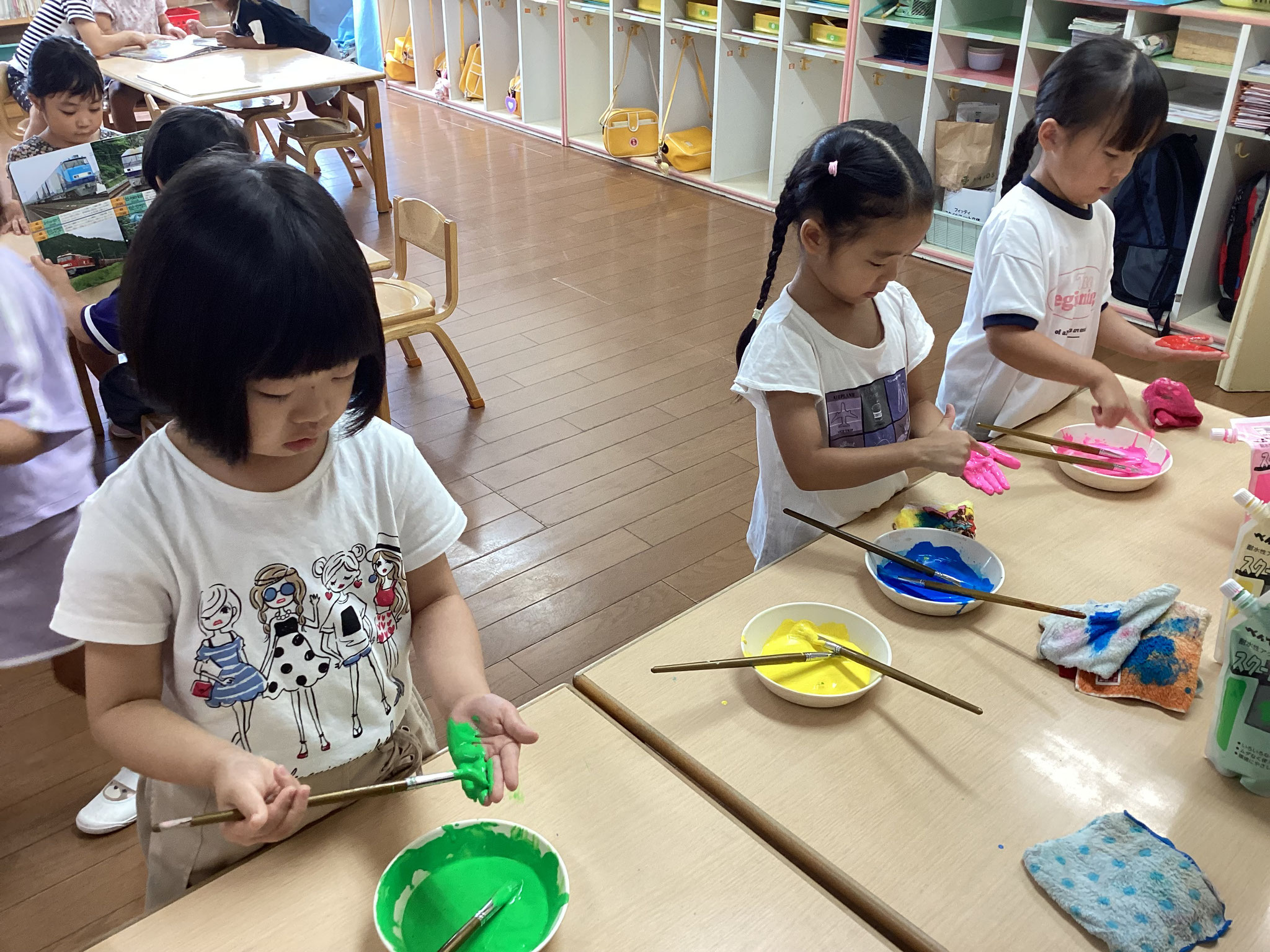 絵の具の感触を味わいながら共同制作を行ったり